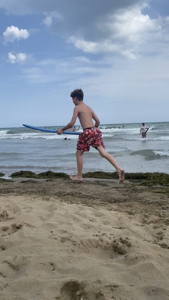 Meine Balance finde ich im Winter auf den Ski, im Sommer auf dem Skimboard und dazwischen auf dem Stunt Scooter.